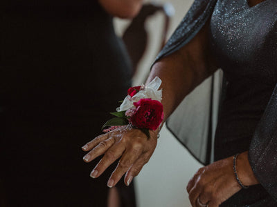 Wrist corsages or pin-on corsages, designed to complement the bouquets with colors of your choice.