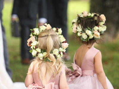Brides, flower girls, and furry friends alike are all complimented by a fanciful crown of flowers.
