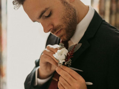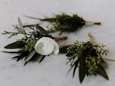 Pin-on boutonnieres, designed to complement the bouquets with colors of your choice.